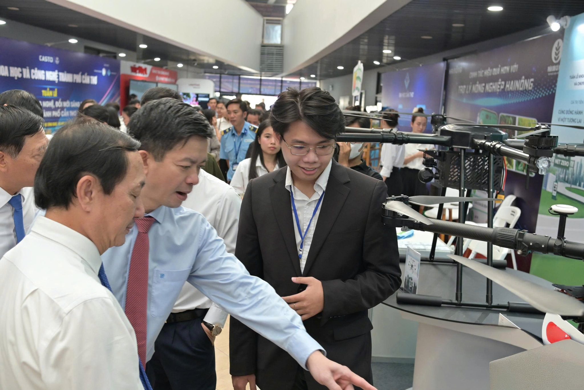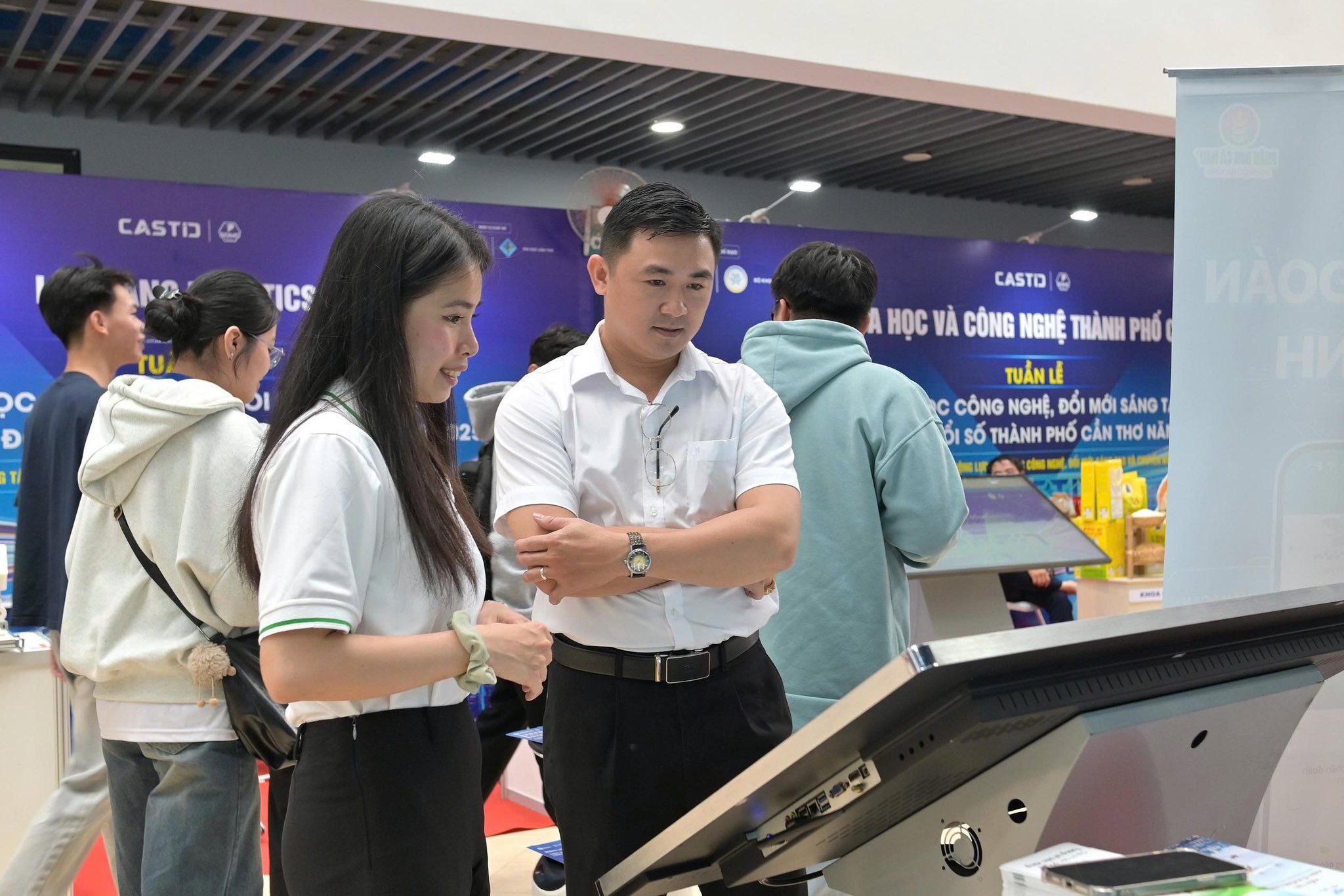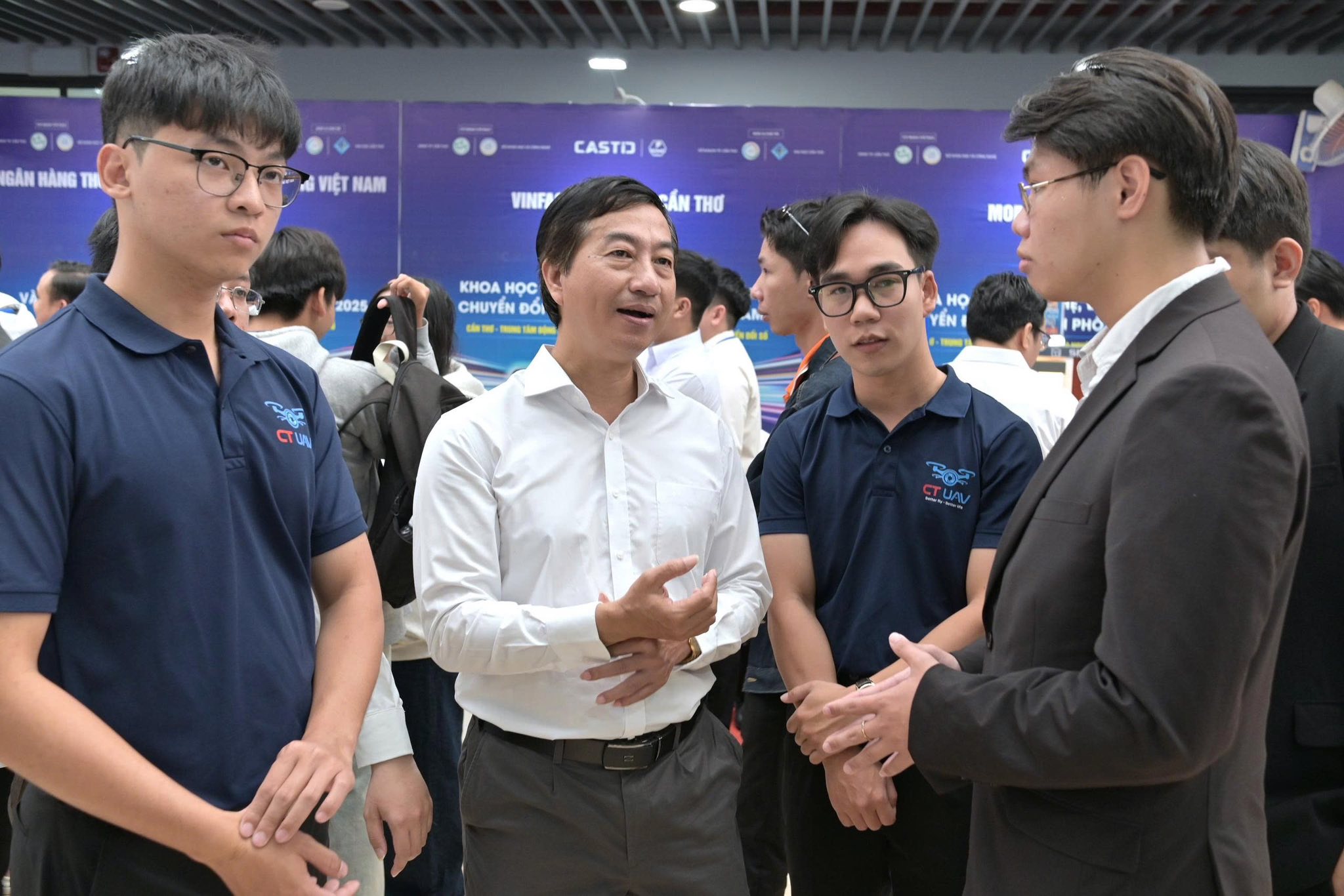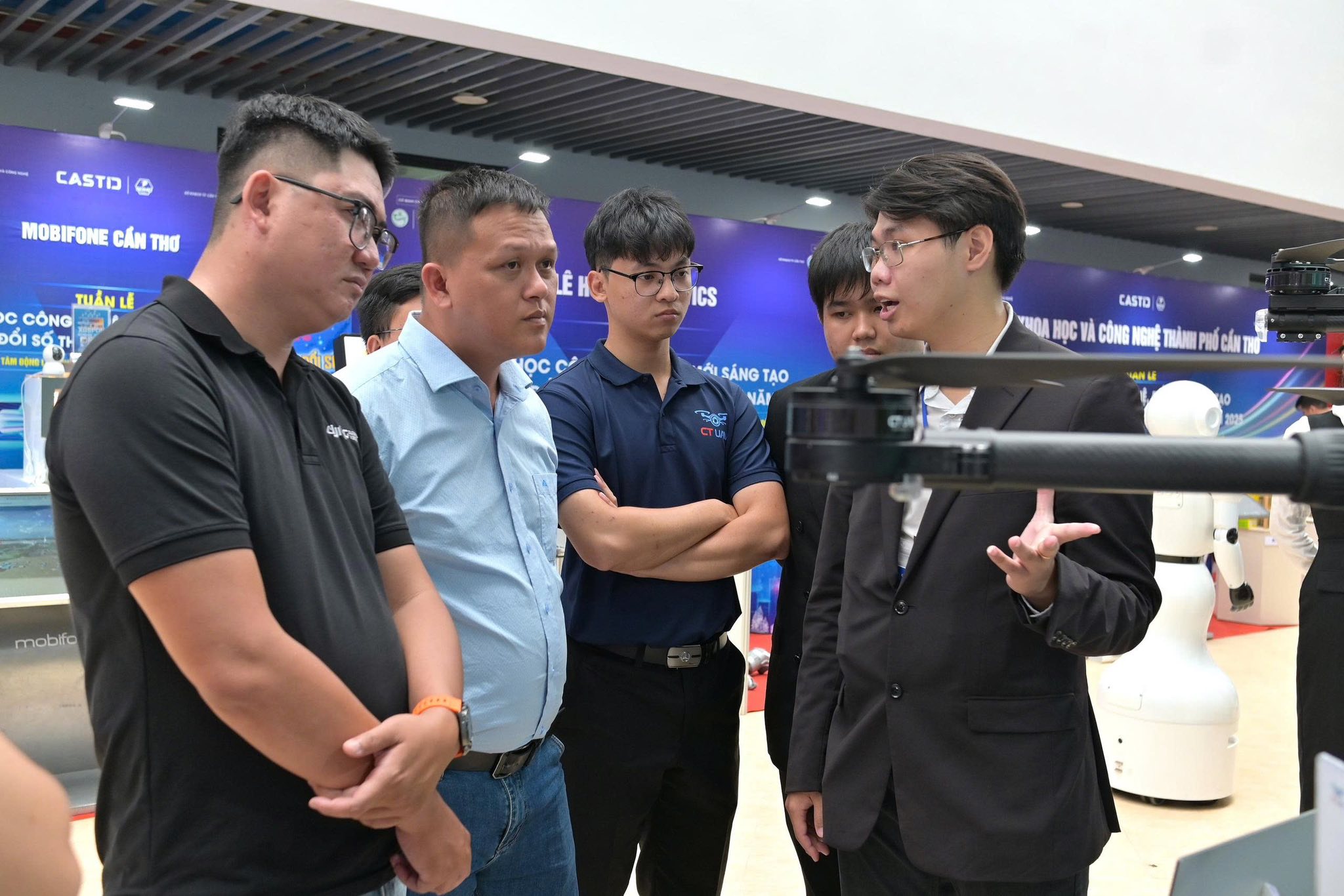 Gian hàng công nghệ CT Group đã thu hút sự quan tâm của đông đảo chuyên gia, nhà khoa học và các bạn trẻ. Đặc biệt, Đoàn lãnh đạo cấp cao Trung ương và TP. Cần Thơ đã đến tham quan, trải nghiệm trực tiếp các sản phẩm công nghệ “make in Vietnam”.