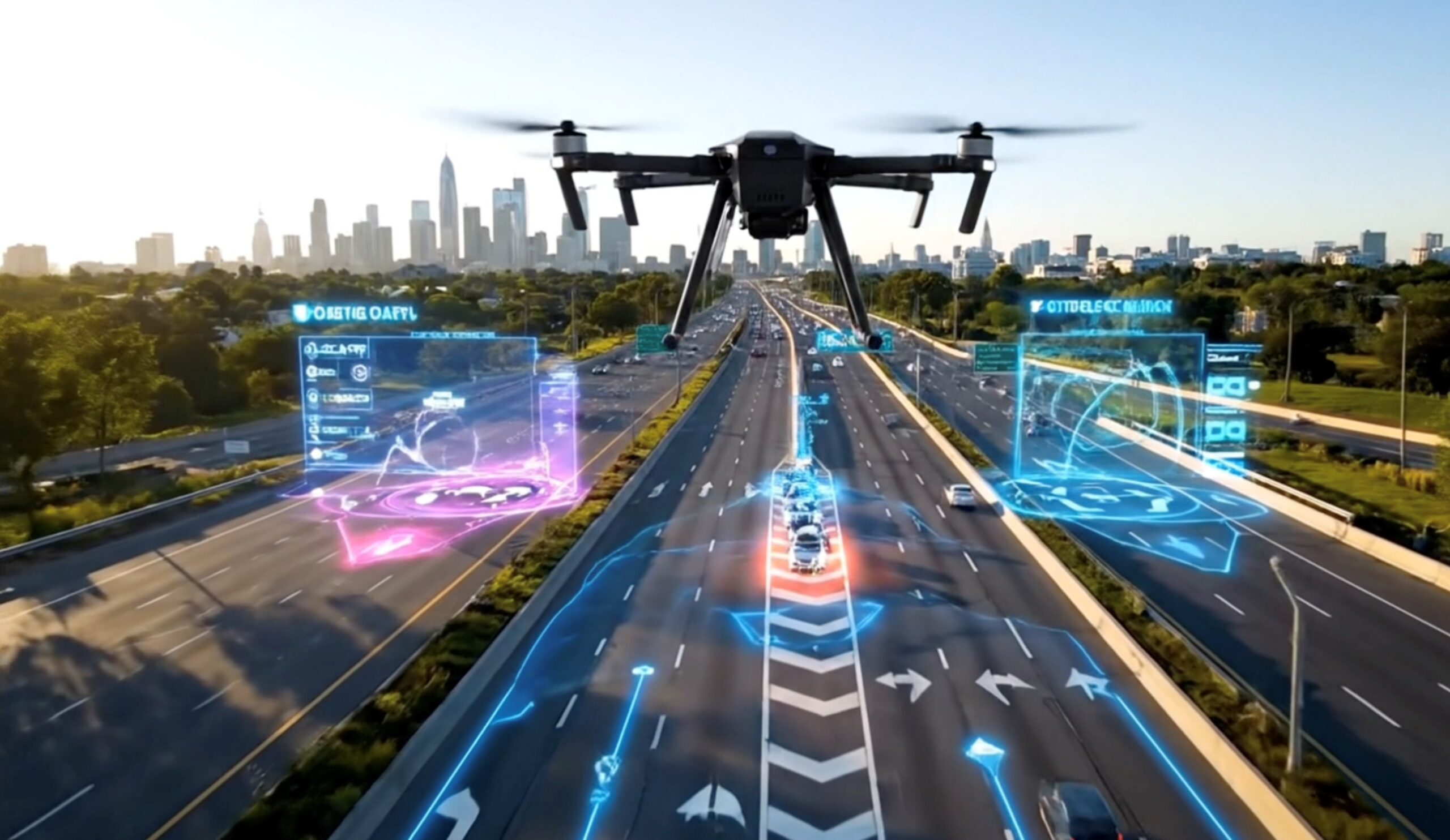Quản lý giao thông thời gian thực bằng UAV AI Vision giám sát luồng xe và phát hiện ùn tắc.