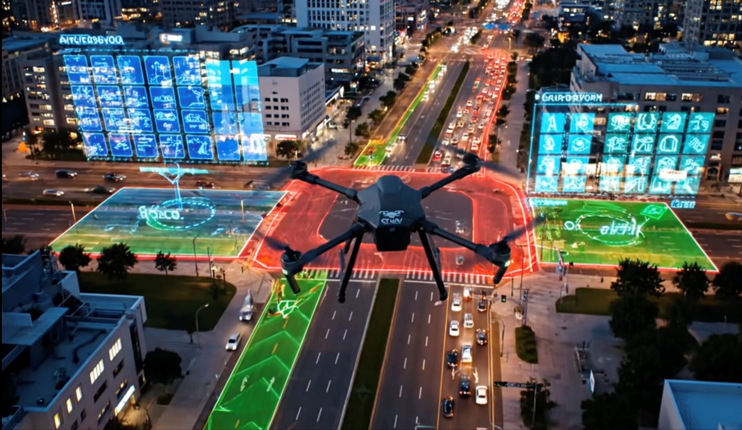 Quản lý bãi đáp UAV nội thành bằng UAV AI Vision giám sát cất – hạ cánh và lưu lượng.