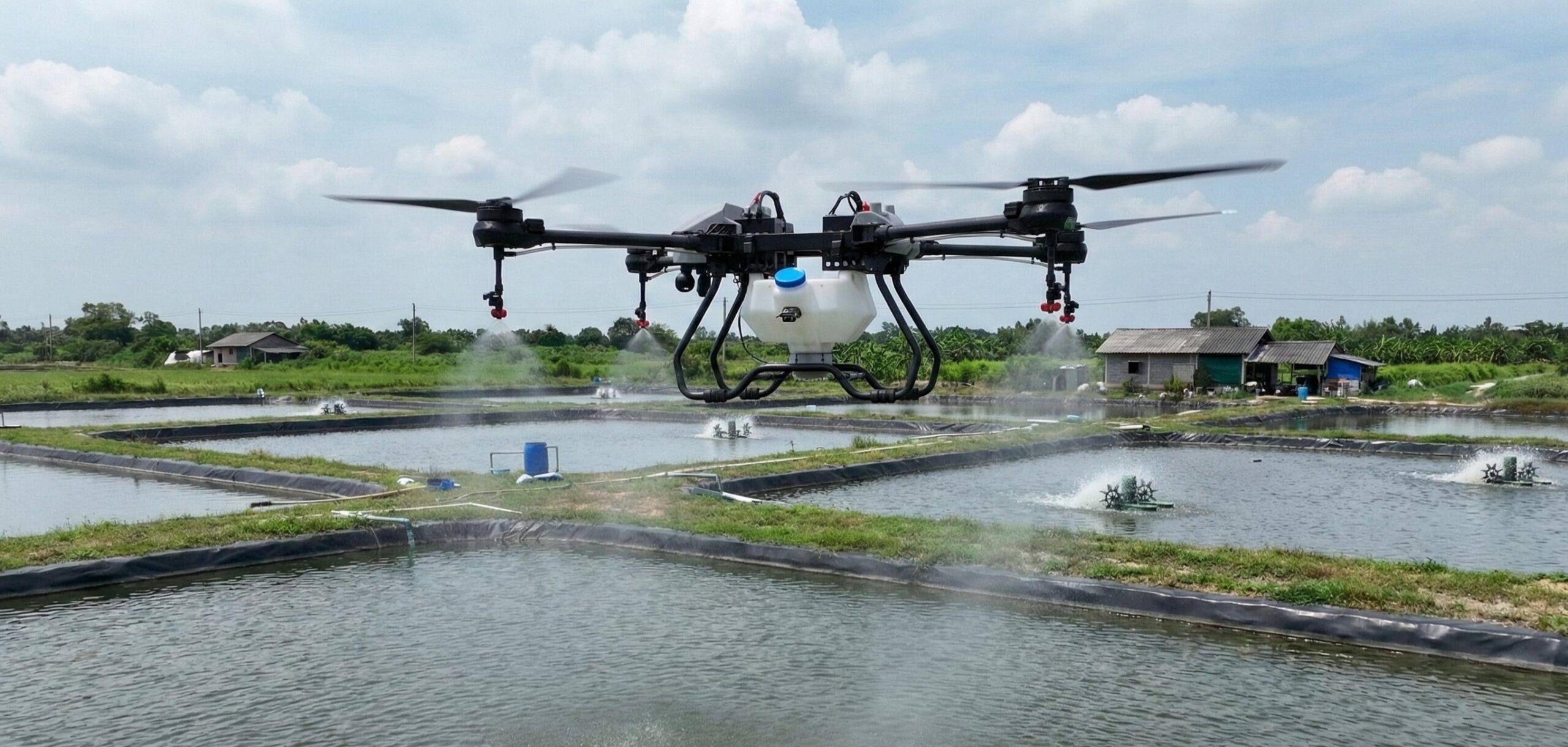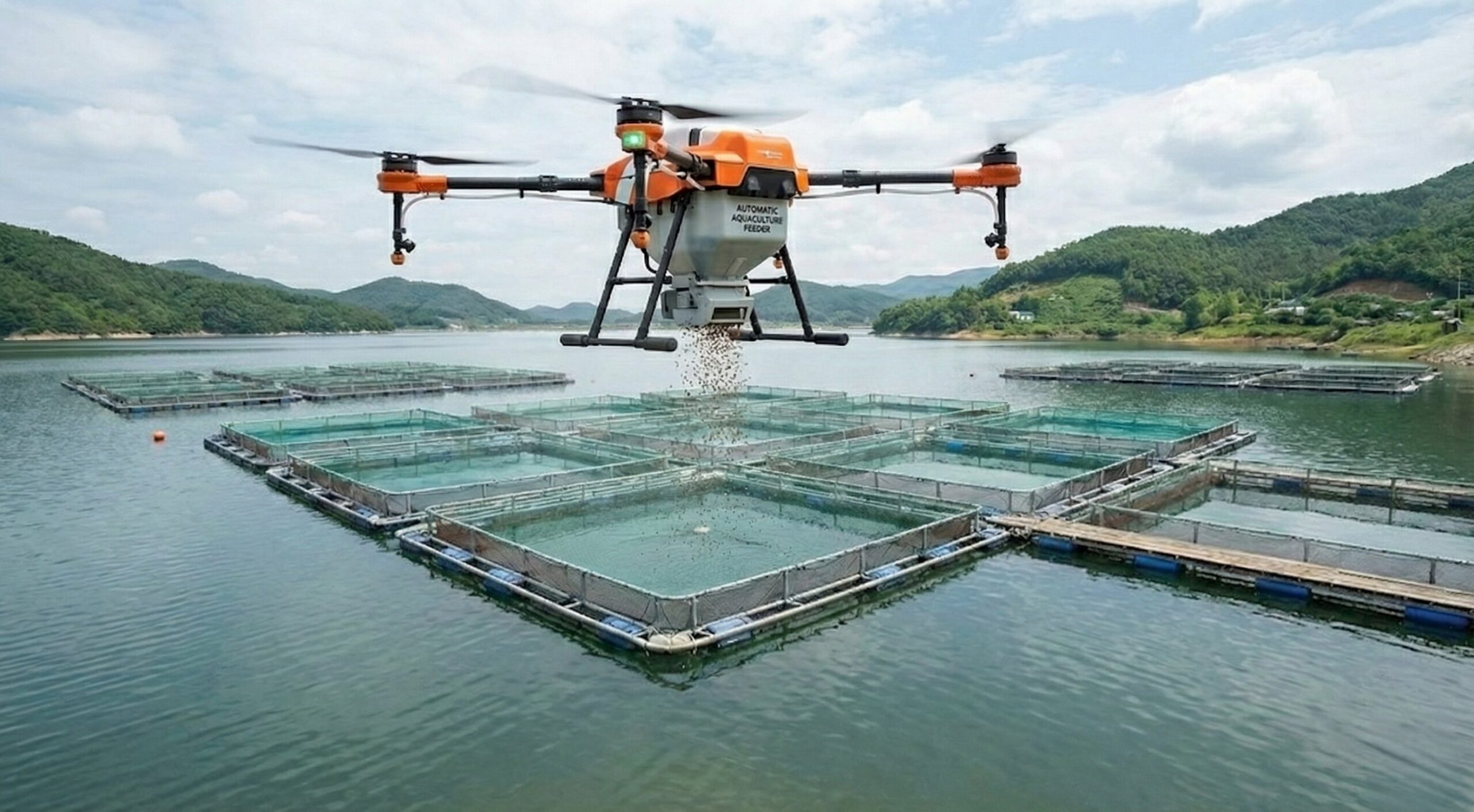 Rải thức ăn tự động cho các khu vực nuôi trồng thủy sản.